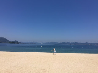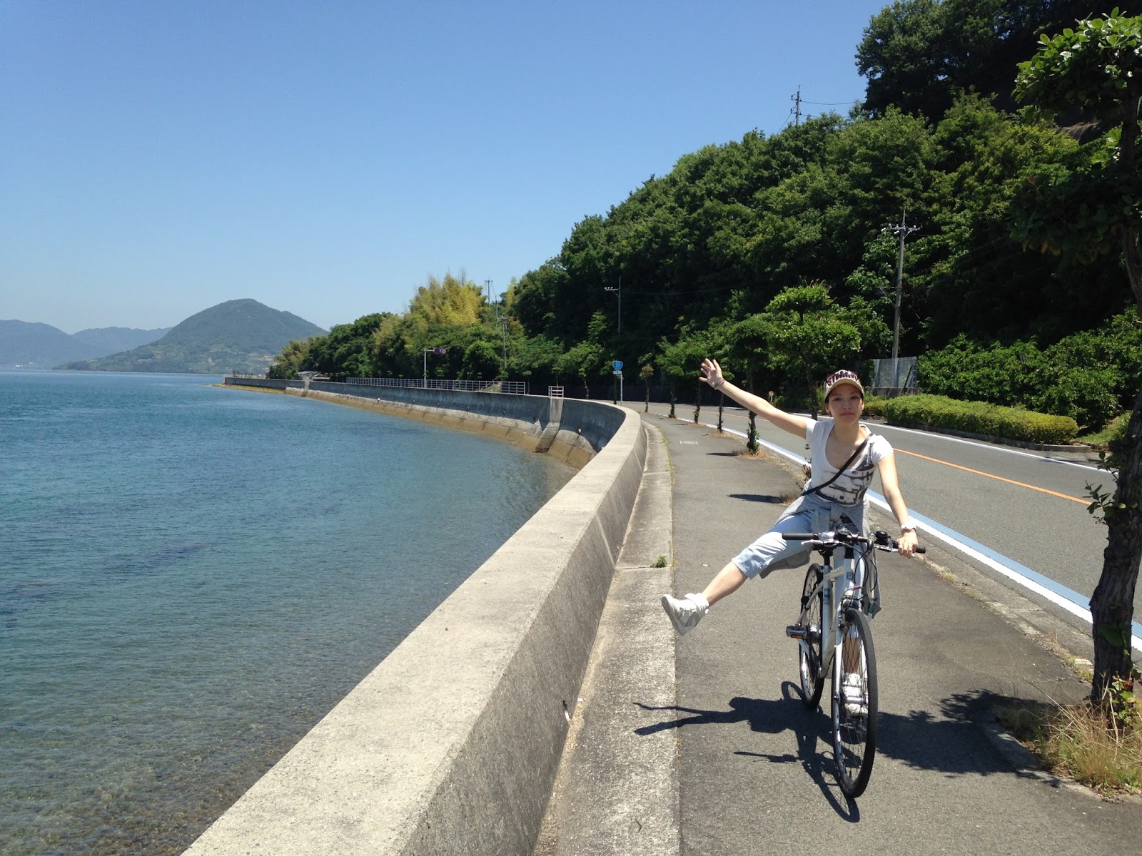 次の日は瀬戸内海の島、生口島(いくちじま)でサイクリングをしました。右手にきれいな海と白い浜、左手にはレモン畑が広がります。日本のレモンの70%がこの島で生産されているだけあって、レモンの木がいっぱい!国産レモンが大好きな私はとっても感激しました。