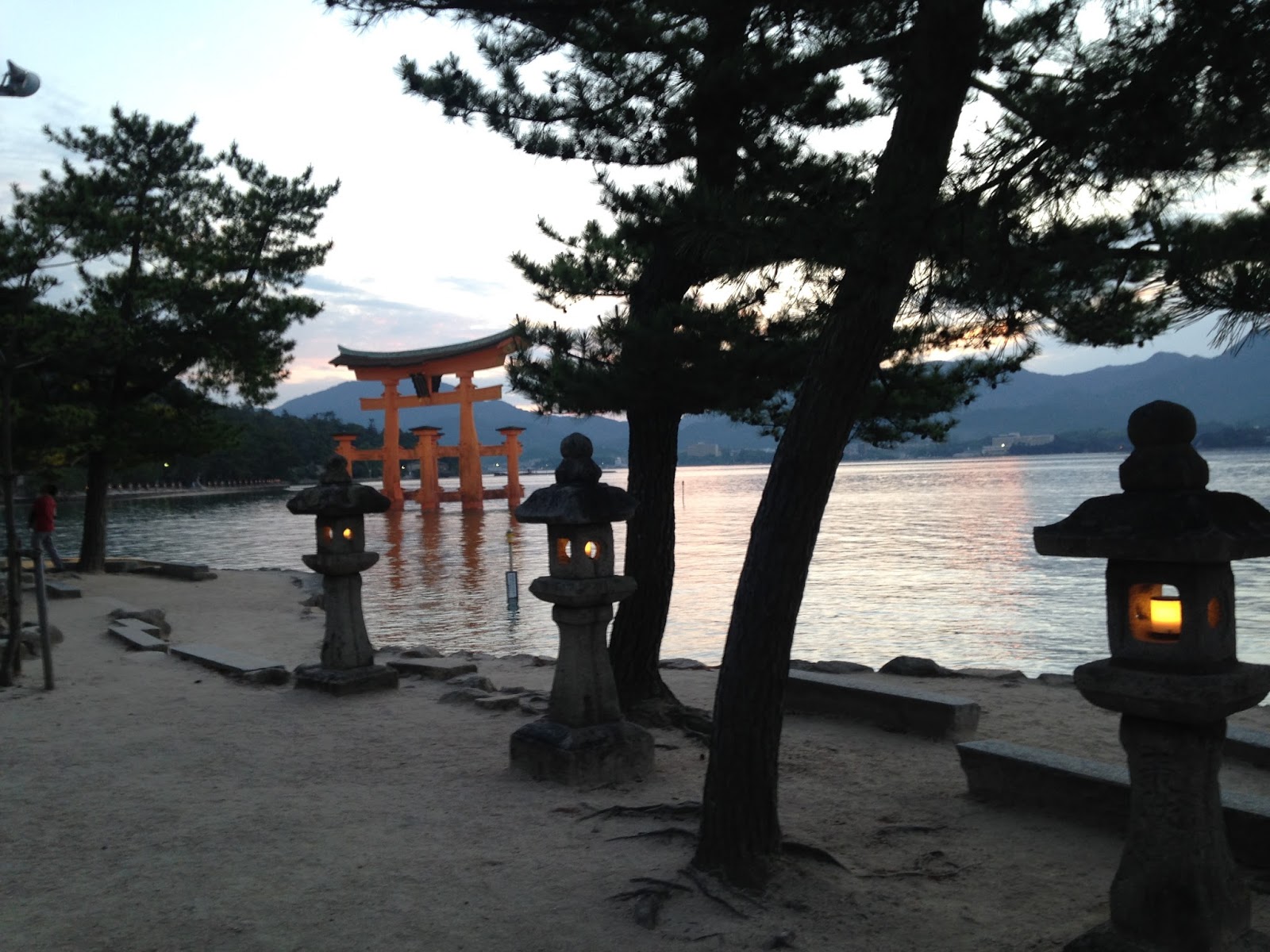 その後、宮島へ移動。「宮島は夜が最高にきれい」という友人のおすすめにしたがって、日の入り前に到着しました。夜の景色はとっても幻想的でした。さらに、私たちは翌朝6:30に厳島神社(いつくしまじんじゃ)ヘ行って、神聖で厳かな雰囲気の中、海の中に建つ神社をお参りしました。